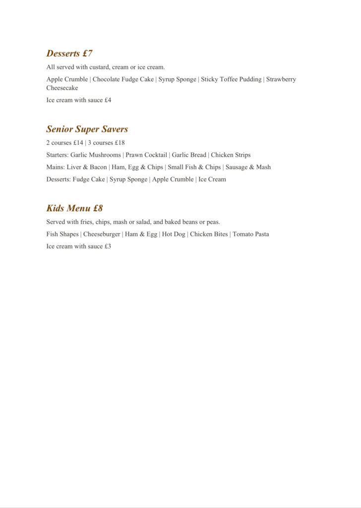 The Kicking Dickey serves a menu of good home cooked pub food, our team take pride in our menus and have provided dishes that are freshly prepared, traditional pub meals for the perfect relaxed dining experience. Our menu includes baguettes and paninis, jacket potatoes, burgers, pies, fish and chips, steaks and grills and every Sunday a traditional roast. All our meats are from Steeles Butchers and our Sunday vegetables are from the Modern greengrocer in Great Dunmow. The menu includes options for all dietary requirements including vegetarian, vegan and gluten free options.